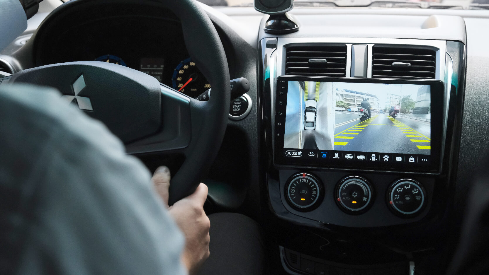 停車時倒車,環景功能自動跳出,後方盲區顯影。
