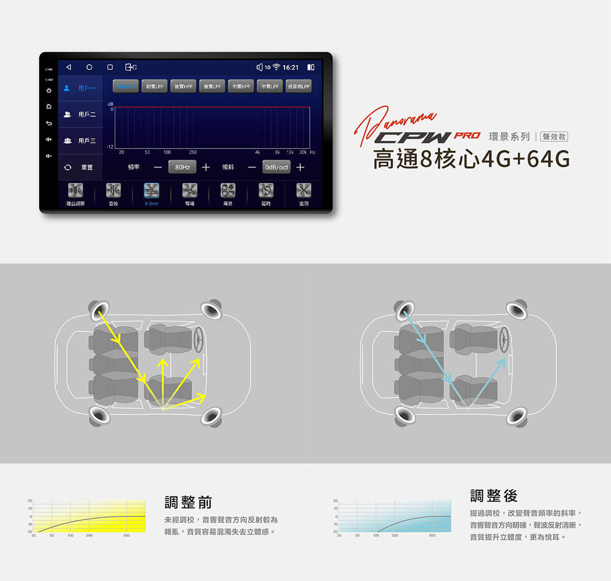 到底擁有強悍DSP音效晶片的車用安卓機,能為汽車音響品質提升到什麼程度,我們就以CARDIO CPW Pro環景聲效款的功能,由基本到專業來一一解說。