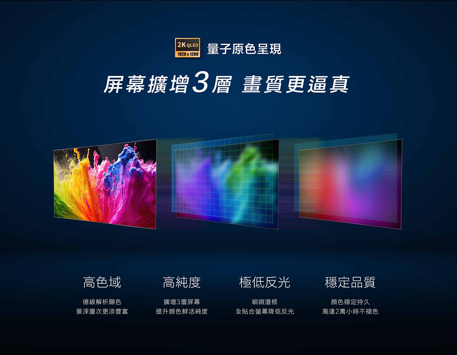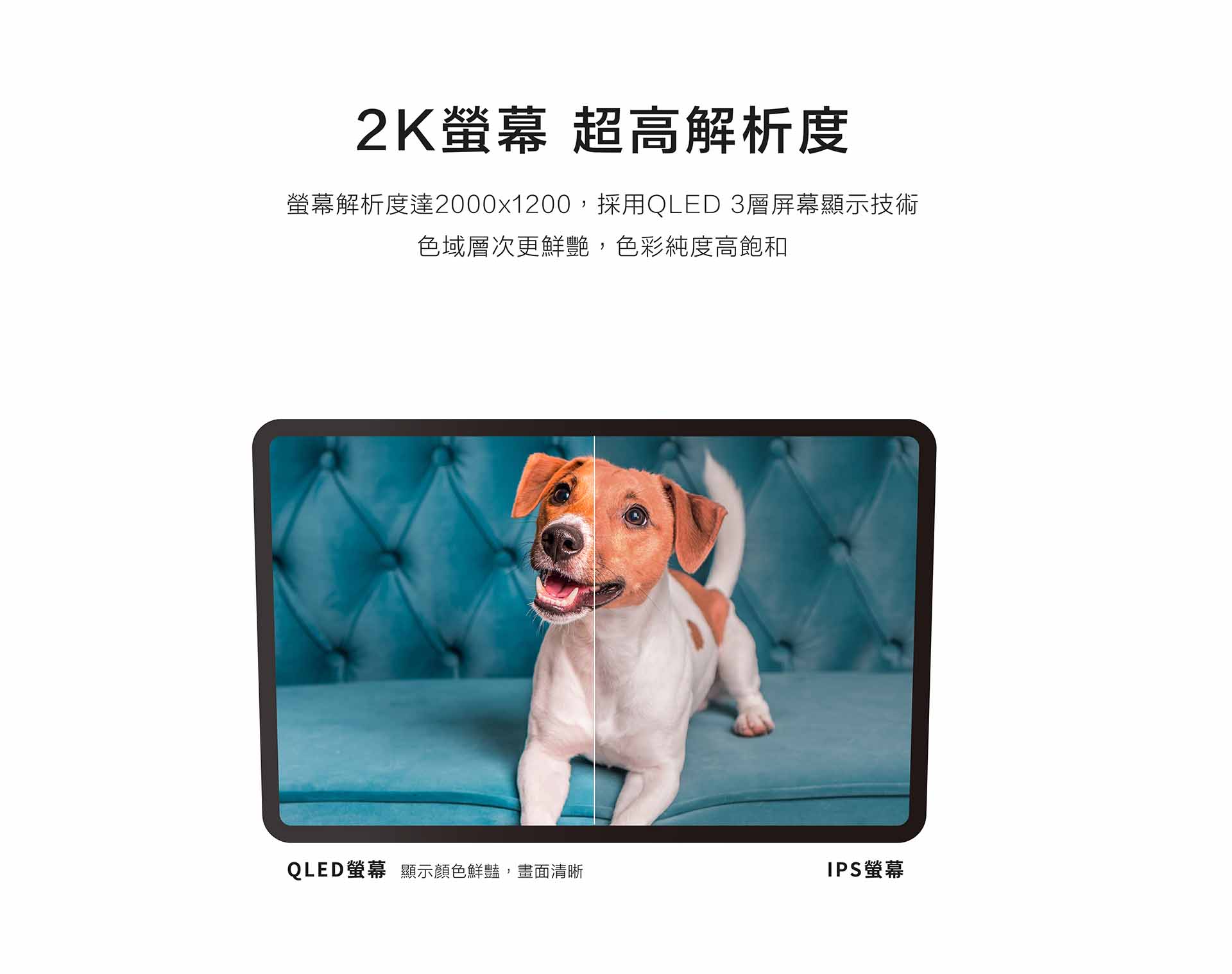 - 2K QLED 2000x1200P 超高解析全貼合螢幕