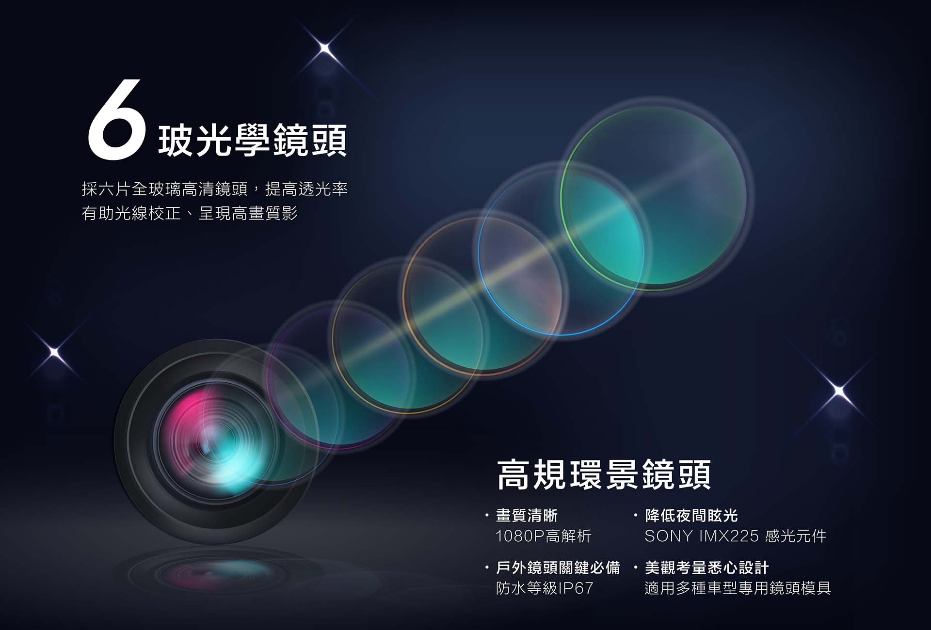 獨家八合一環景系統 / 3D 360環景 / 1080P 六玻鏡頭 |
