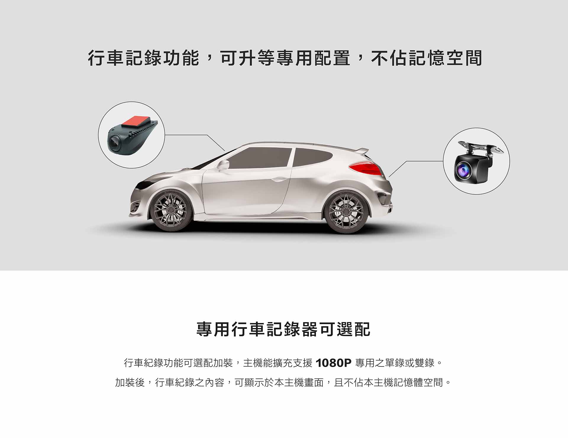 - 1080P專用行車記錄器單錄/雙錄(選配)