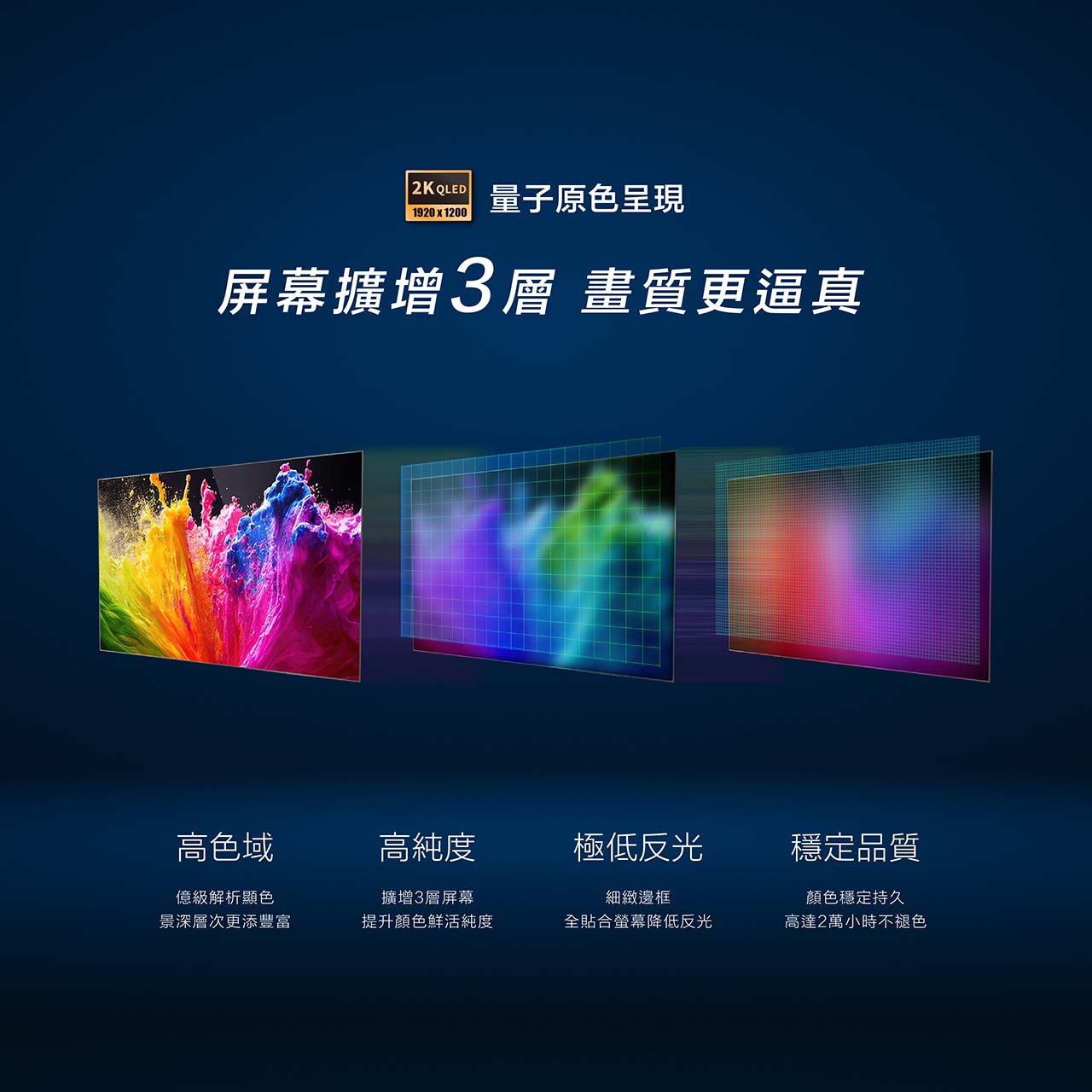 - 2K QLED 2000x1200P 超高解析全貼合螢幕