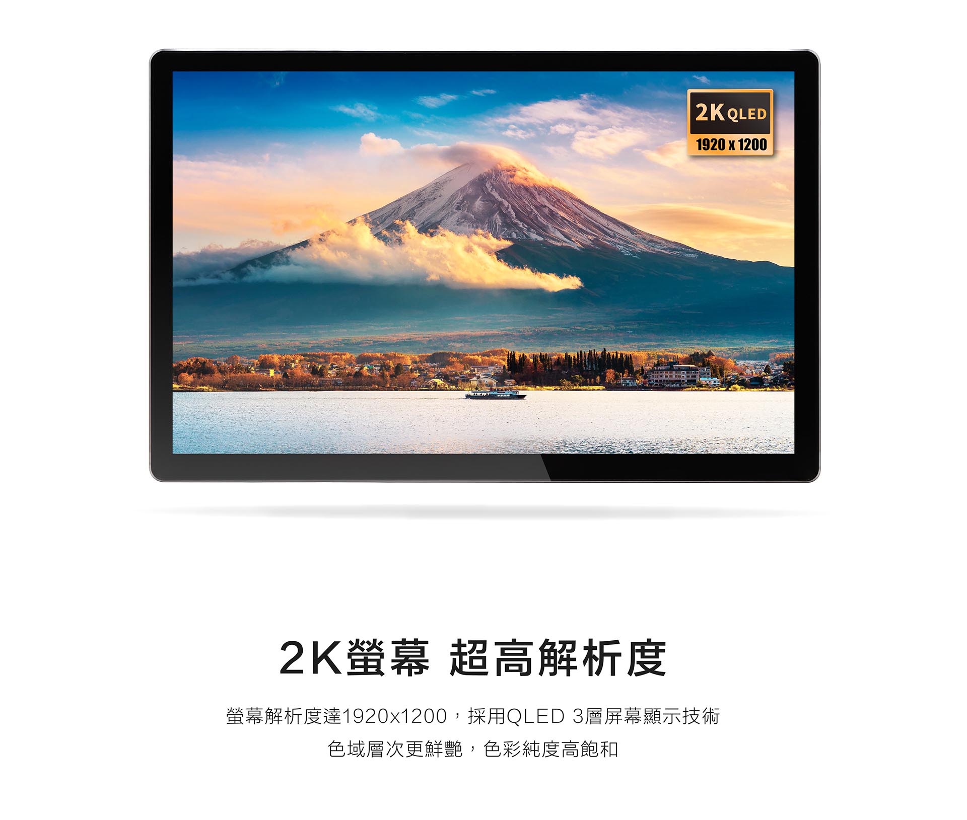 - 13吋 QLED 2K-1920×1200 超高解析度顯示屏