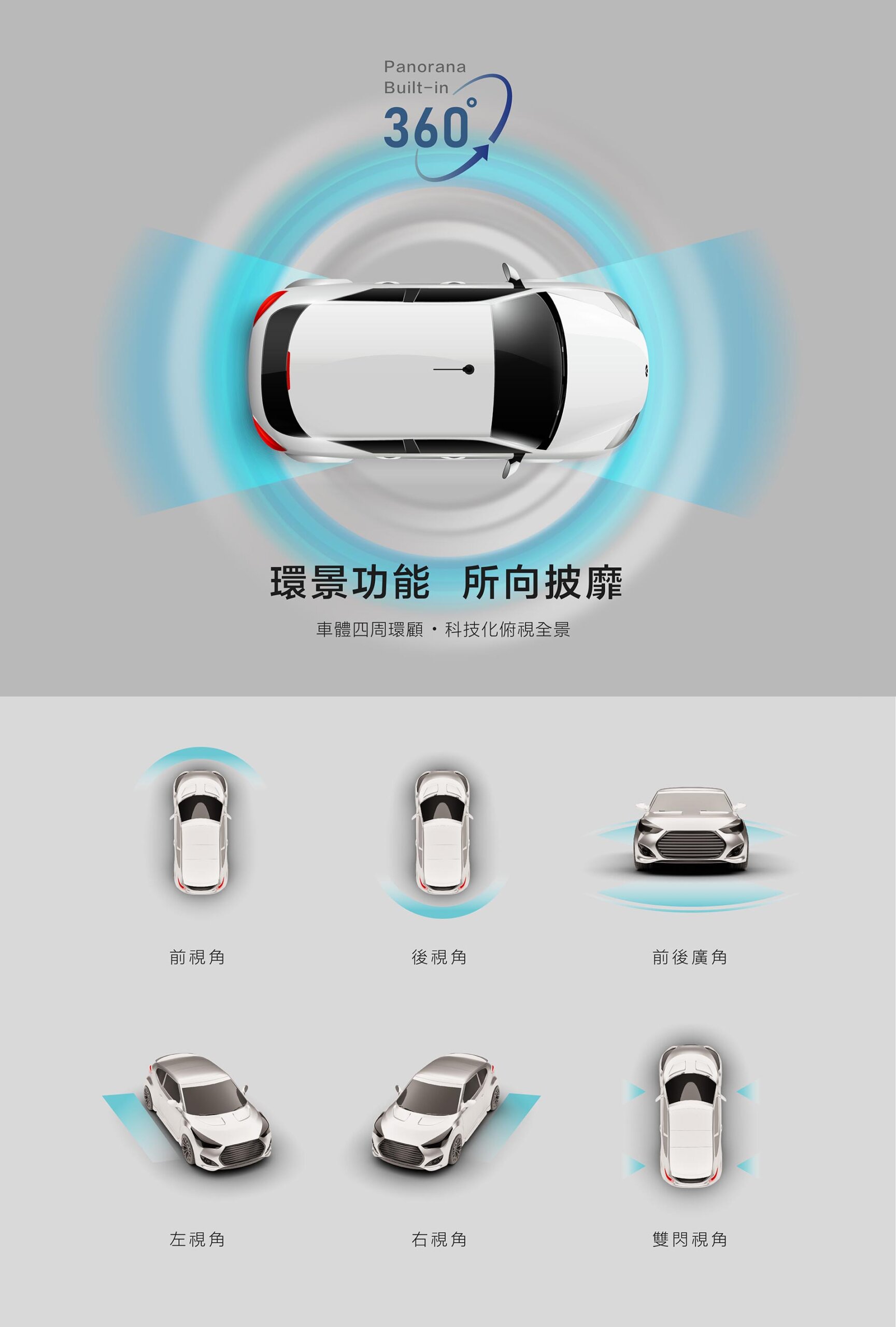 獨家八合一環景系統 / 3D 360環景 / 1080P 六玻鏡頭 |