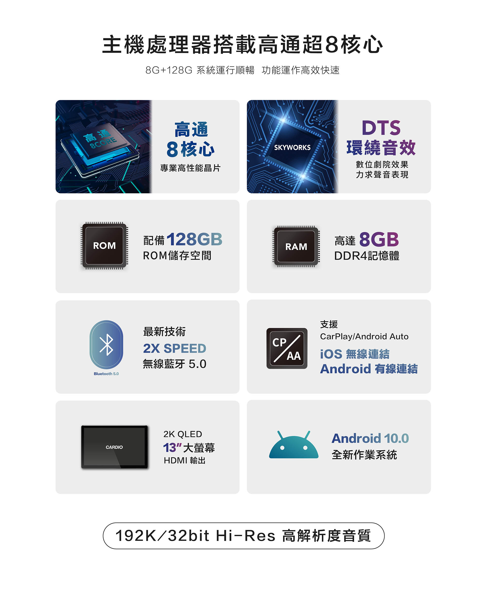 DTS環繞音效晶片,192K/32bit Hi-Res 高解析度音質 |