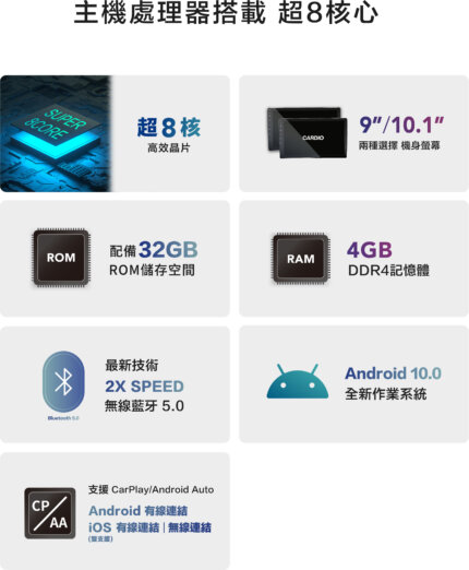- ANDROID 10.0,車規MTK超八核,DDR4 8G,ROM 128G