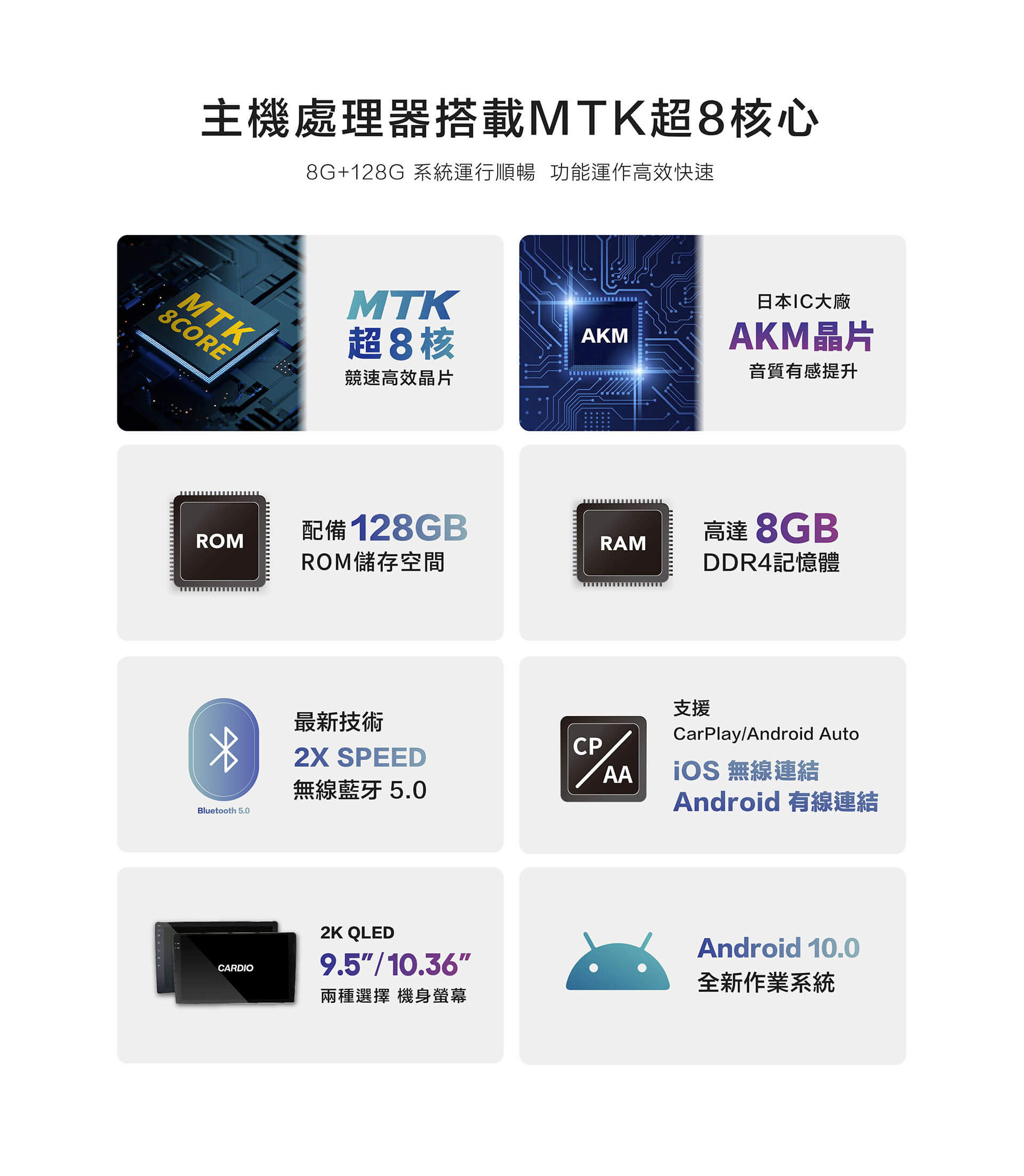 - ANDROID 10.0,車規MTK超八核,DDR4 8G,ROM 128G
